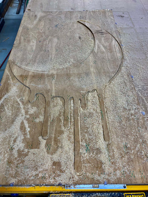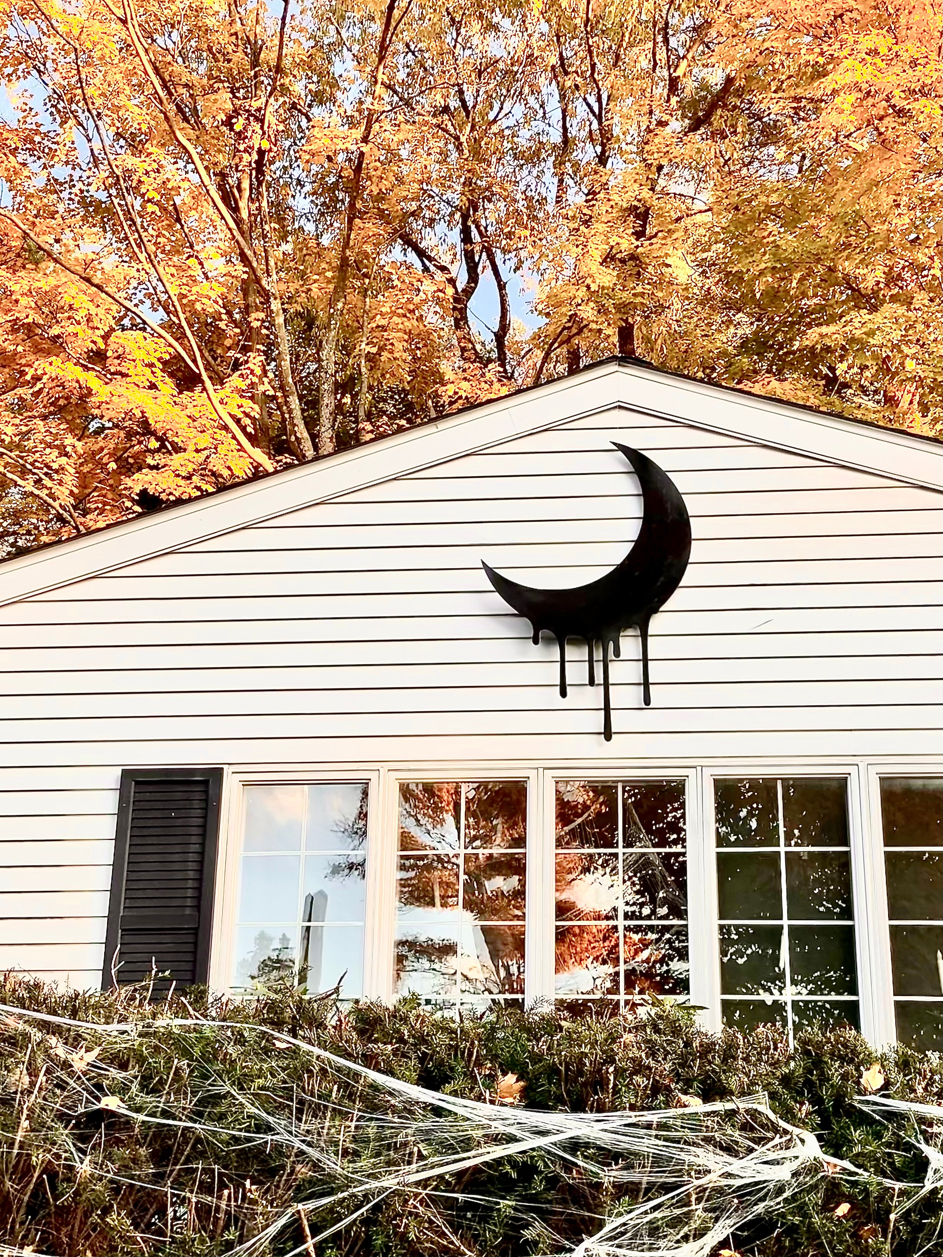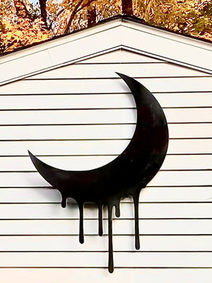 The Drippy Collection Crescent Moon is adds much needed drip to your Halloween decor. Made from 0.25” plywood and finished in a low sheen black. For outdoor use.