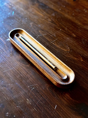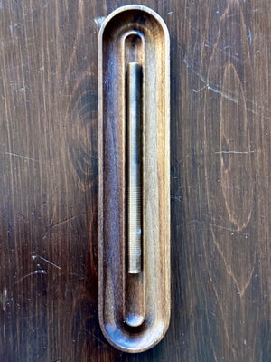 The Ridge Collection Pen Holder is a fluted walnut tray designed to hold up to 3 pens or pencils.